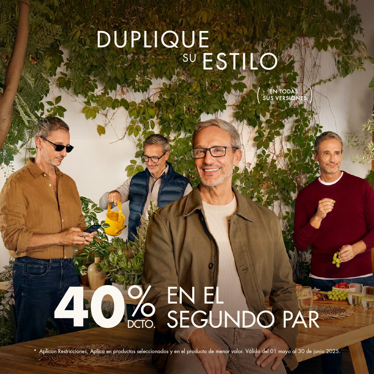 Obtenga un 40% de descuento sobre precio regular en la compra de la segunda unidad de “ARO CON LENTES + ANTEOJO DE SOL”, “ARO CON LENTES + ARO CON LENTES” y un 30% de descuento sobre precio regular en la segunda unidad aplicada en las combinaciones “ANTEOJO DE SOL + ANTEOJO DE SOL”. Además, obtenga un 50% de descuento sobre precio regular en la compra de la segunda unidad de “ARO CON LENTES + LENTES DE CONTACTO”, “ANTEOJO DE SOL + LENTES DE CONTACTO”. Descuento válido para producto de menor valor. Descuento no aplica en líquidos y/o accesorios. Descuento no acumulable con otras promociones y/o descuentos. Descuento vigente por 15 días para hacer efectivo el canje del cupón. Promoción válida del 01 de mayo al 30 de junio del 2025 en tiendas físicas y www.opticasvision.co.cr